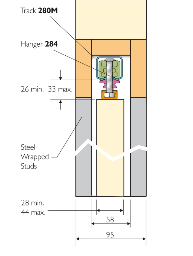 HENDERSON Rennihurðabraut POCKET DOOR Hám breidd: 826mm Hæð: 2040mm 28-44mm 60kg PDKSOFT6